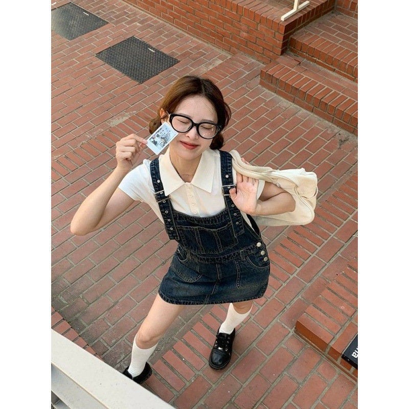 Rok Pendek Bertali Denim Pakaian Kerja Amerika Gaun Pendek Murid Muda Model Baru 2025 Wanita Musim Panas Rok Terlihat Langsing