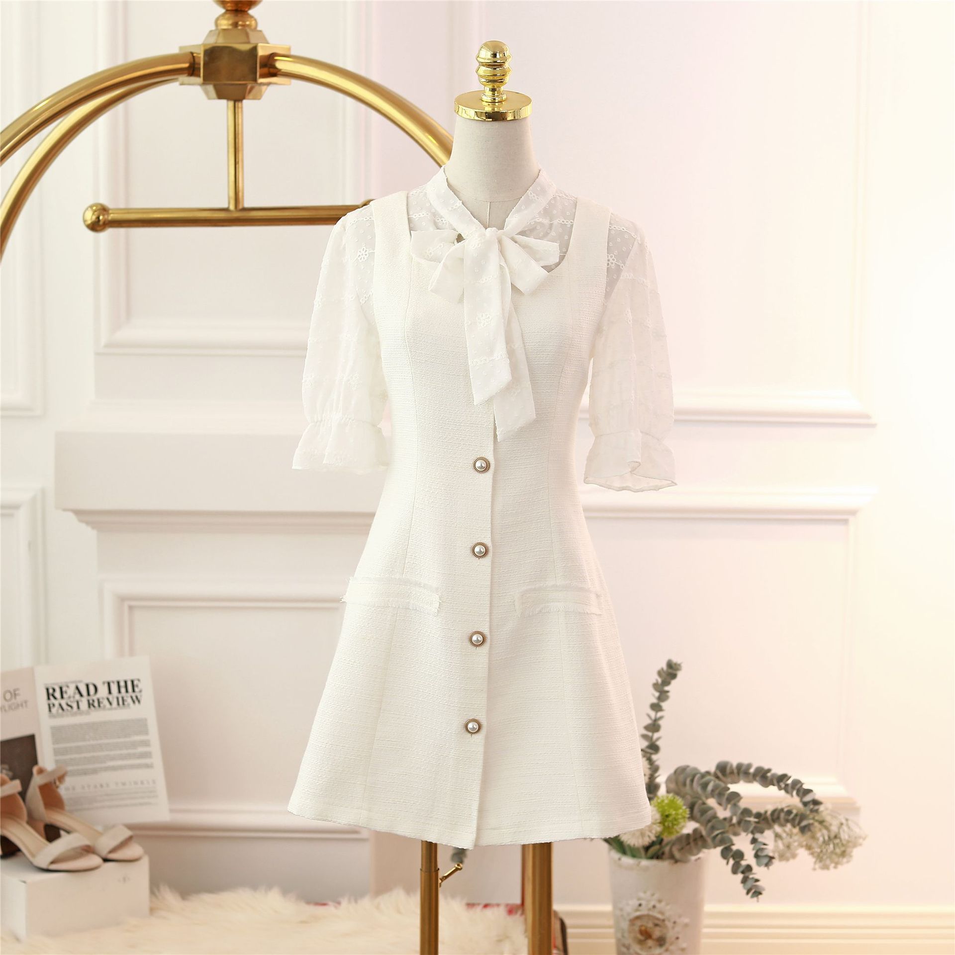 Baju Atasan Putih Gaya Liburan Model Baru Musim Semi dan Musim Panas Rok Setengah Badan Warna Putih Setelan Pakaian Wanita Lintas Batas Shenzhen Nanyou