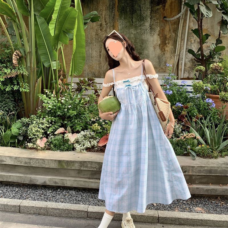 Gaun Kelas Atas Rok Tali Garis Dua Potong Palsu Kerah U Model Baru Rok Rok Rok Peri Gaya Mori Pelajar Super Peri Instagram