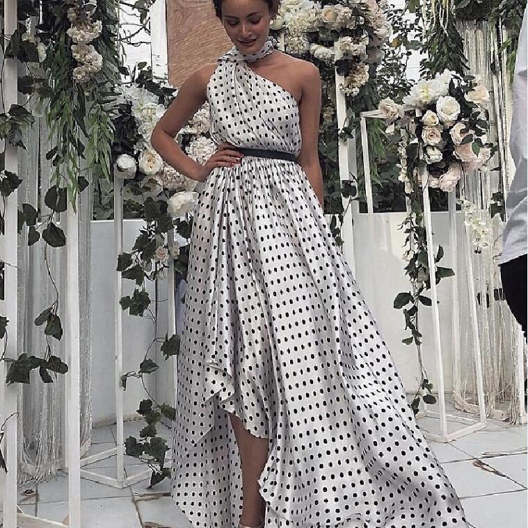 Gaun satin sutra polkadot penjualan laris Amazon populer Eropa dan Amerika lintas batas dicetak rok ayun besar pengiriman satu bagian