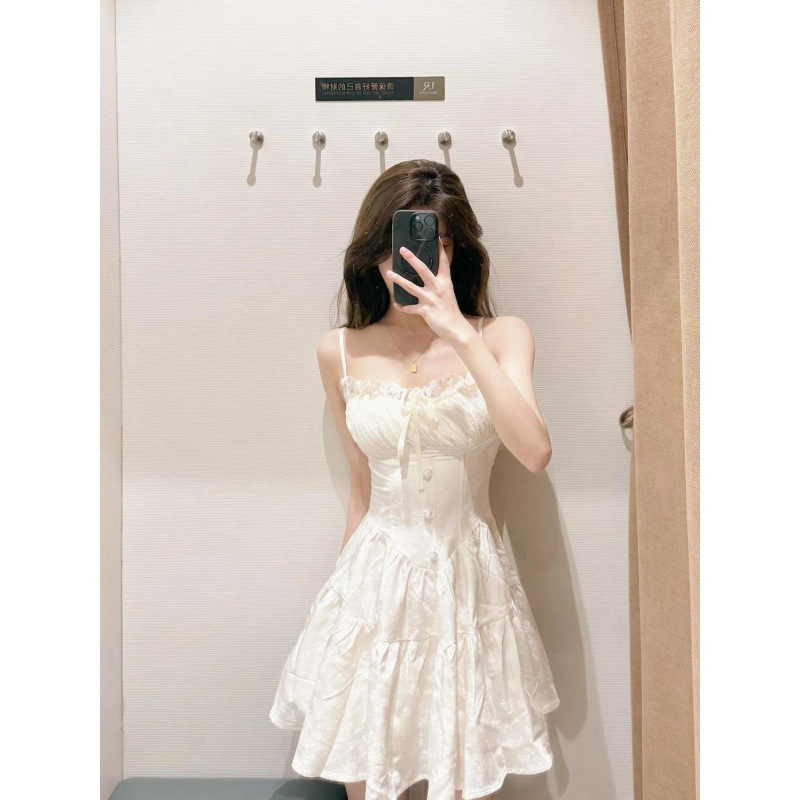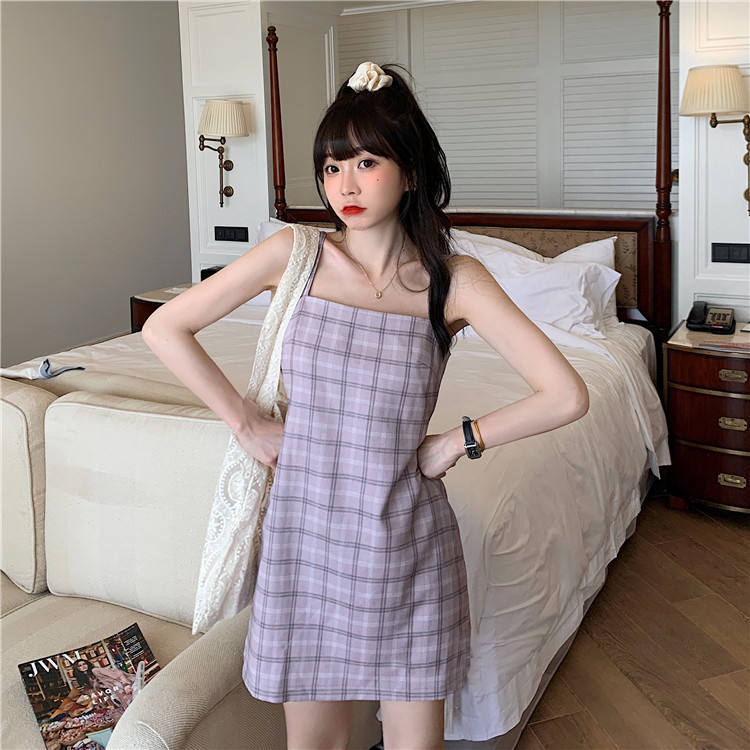 Gaun Suspender Terlihat Langsing Membentuk Pinggang Gaya Perancis Model Baru Musim Panas Rok A-Line Langsing Cinta Pertama Elegan Gaya Manis Pelajar Perempuan