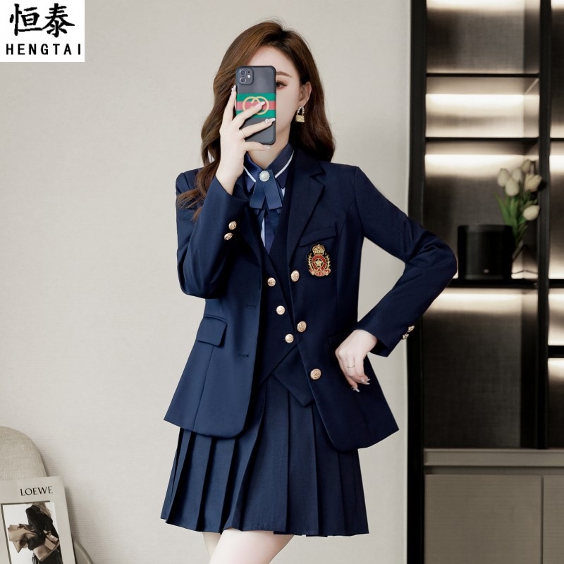 Setelan rompi gaya Inggris musim gugur dan musim dingin rok lipit setelan profesional pakaian kerja wanita gaya Barat JK seragam gaya kuliah pakaian kerja