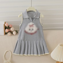 Gaun Anak-Anak Rok Romo Elegan Modis Anak Perempuan Versi Korea Musim Panas Model Baru Rok Anak Perempuan Tanpa Lengan Lucu Kartun