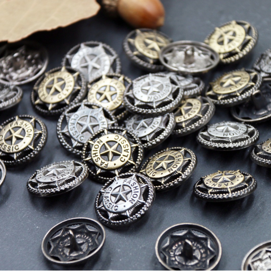 Mantel kaki tinggi berongga Aloi gaya Inggris Retro tombol jahit tangan lapisan logam