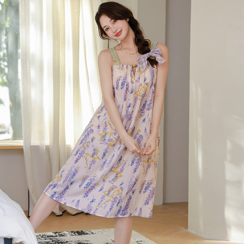 Gaun Tidur Katun Sutra Musim Panas Gaun Gantung Model Tipis Baju Tidur Katun Buatan Gadis Manis Pakaian Rumah Pelajar Gaya Sejuk