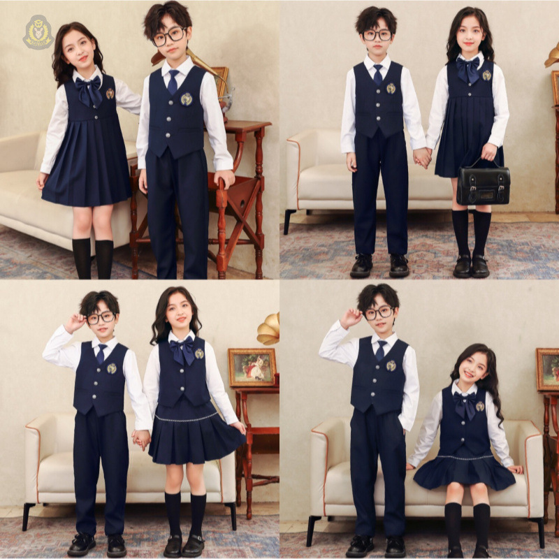 Setelan seragam sekolah dasar anak-anak, seragam kinerja anak-anak, setelan seragam sekolah dasar, rompi seragam kelas Musim Semi dan Musim Gugur, seragam taman gaya Inggris