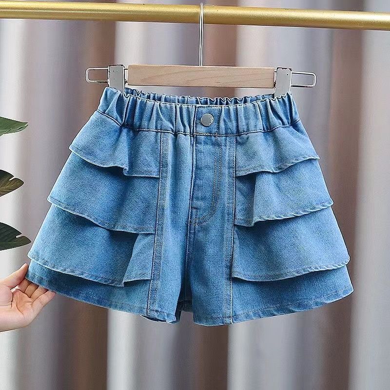 Pakaian Musim Panas Anak Perempuan Model Baru Musim Panas Celana Rok Denim Mudah Dipadu Padan Anak Perempuan 8 Tahun Musim Panas Kaos Oblong Katun Murni Lengan Pendek