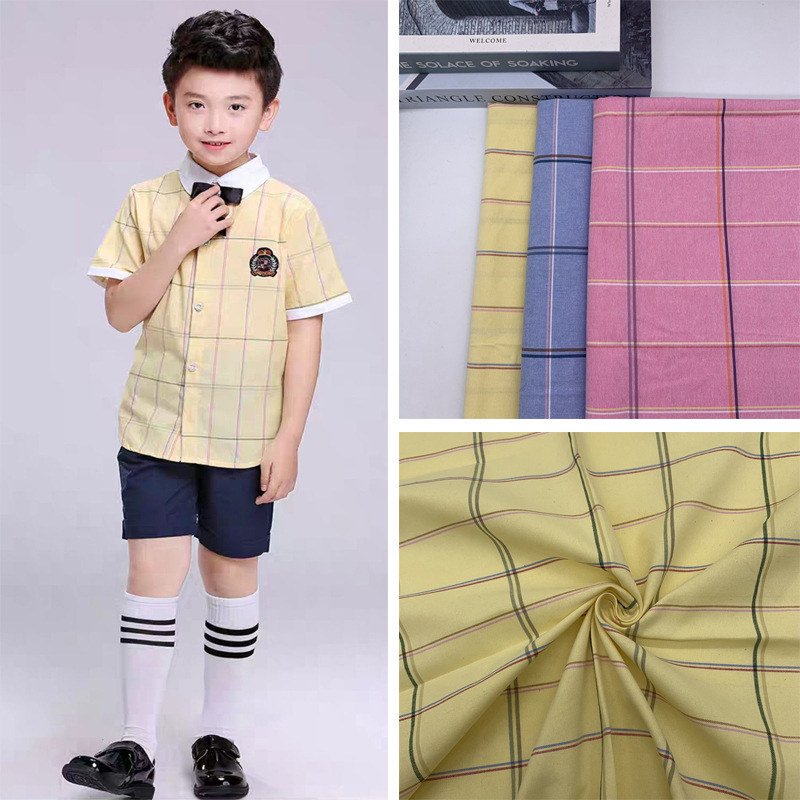 Baju katun kotak-kotak anak-anak, baju seragam sekolah baju taman atasan kain kotak-kotak katun Murni polos