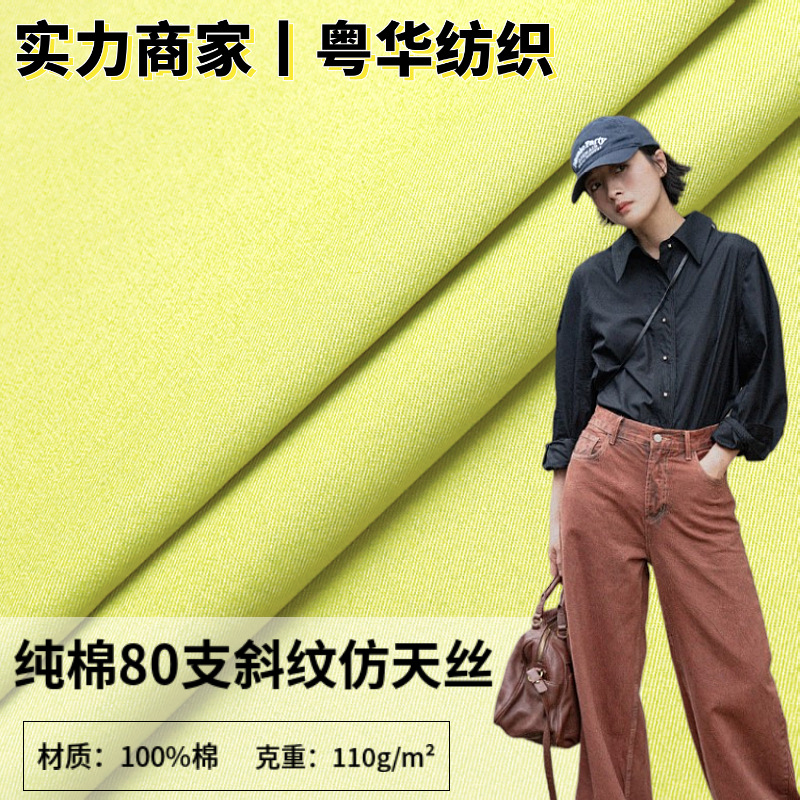 Katun kelas atas 80 twill imitasi Tencel 110g merek High-end kemeja kain halus lembut mercerized