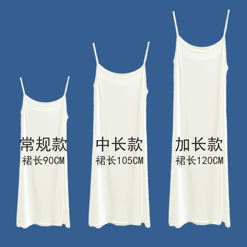 Rok dalam kamisol putih Anti transparan, rompi rok dalam musim panas wanita, Gaun panjang menengah anti paparan