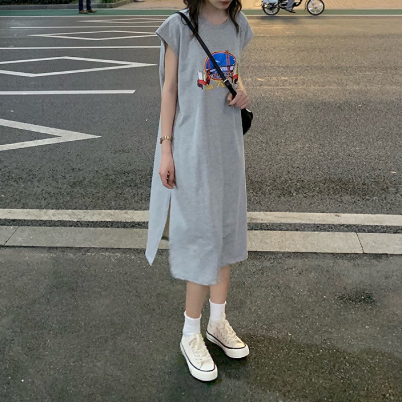 2025 Rok Panjang Tanpa Lengan Pakaian Musim Semi Musim Panas Wanita Bercorak Murid Gaya Harajuku Tank-top Gaun Wanita Bercabang Panjang Sedang