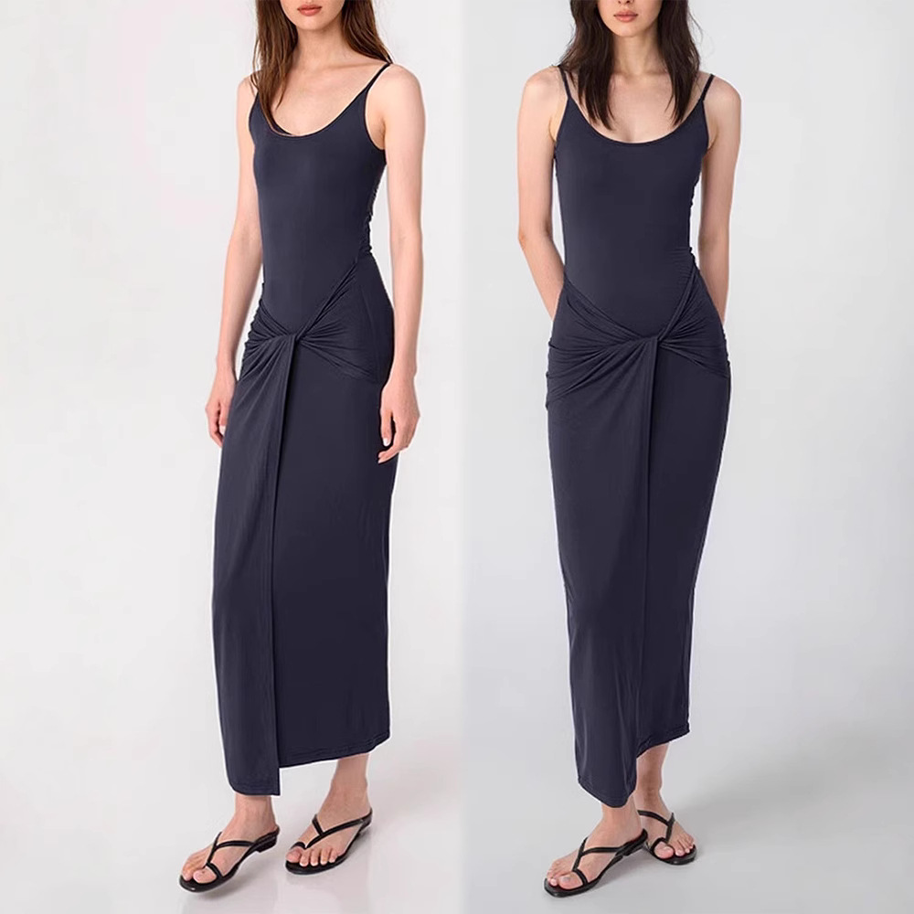 Gaun Tali Twisted Eden Bermimpi Produk Tersedia Rok Panjang Niche Model Baru Musim Panas 2025 Wanita Rok Satu Langkah Tanpa Lengan Liburan