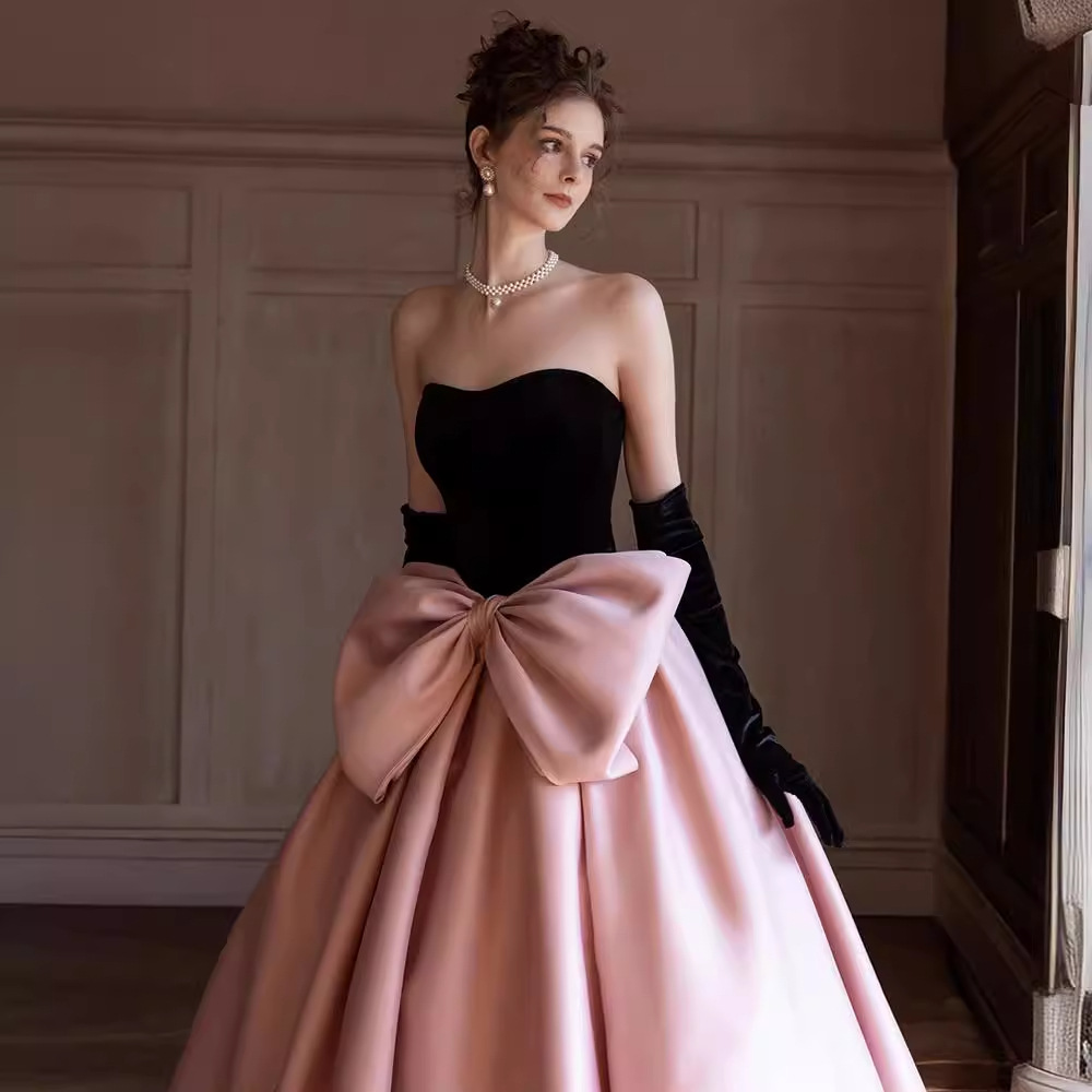 Gaun malam gaya Hepburn atas tabung Perancis gaun malam Upacara dewasa ujian seni vokal siswa baru kostum tuan rumah perjamuan