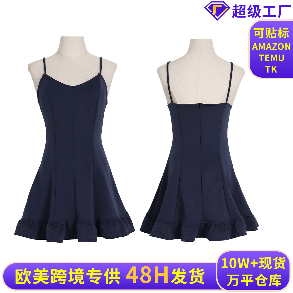 Gaun suspender anak perempuan, Gaun princess berlipat pinggang ketat hitam gaya Hepburn Prancis baru musim semi dan musim gugur 2024