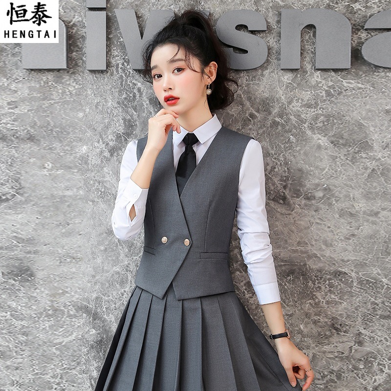 Setelan rompi pakaian bisnis wanita, seragam guru temperamen Musim Semi dan Musim Gugur, pakaian kerja taman, gaya kuliah JK