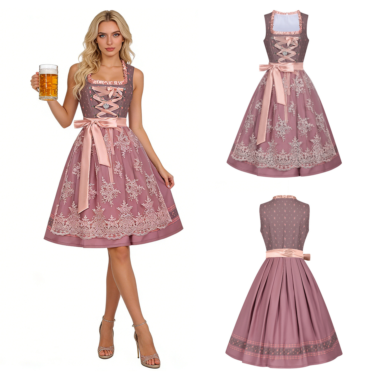 Mantianyu Amazon Jerman Oktoberfest Pakaian Bavaria Bercorak Renda Gaun Pelayan