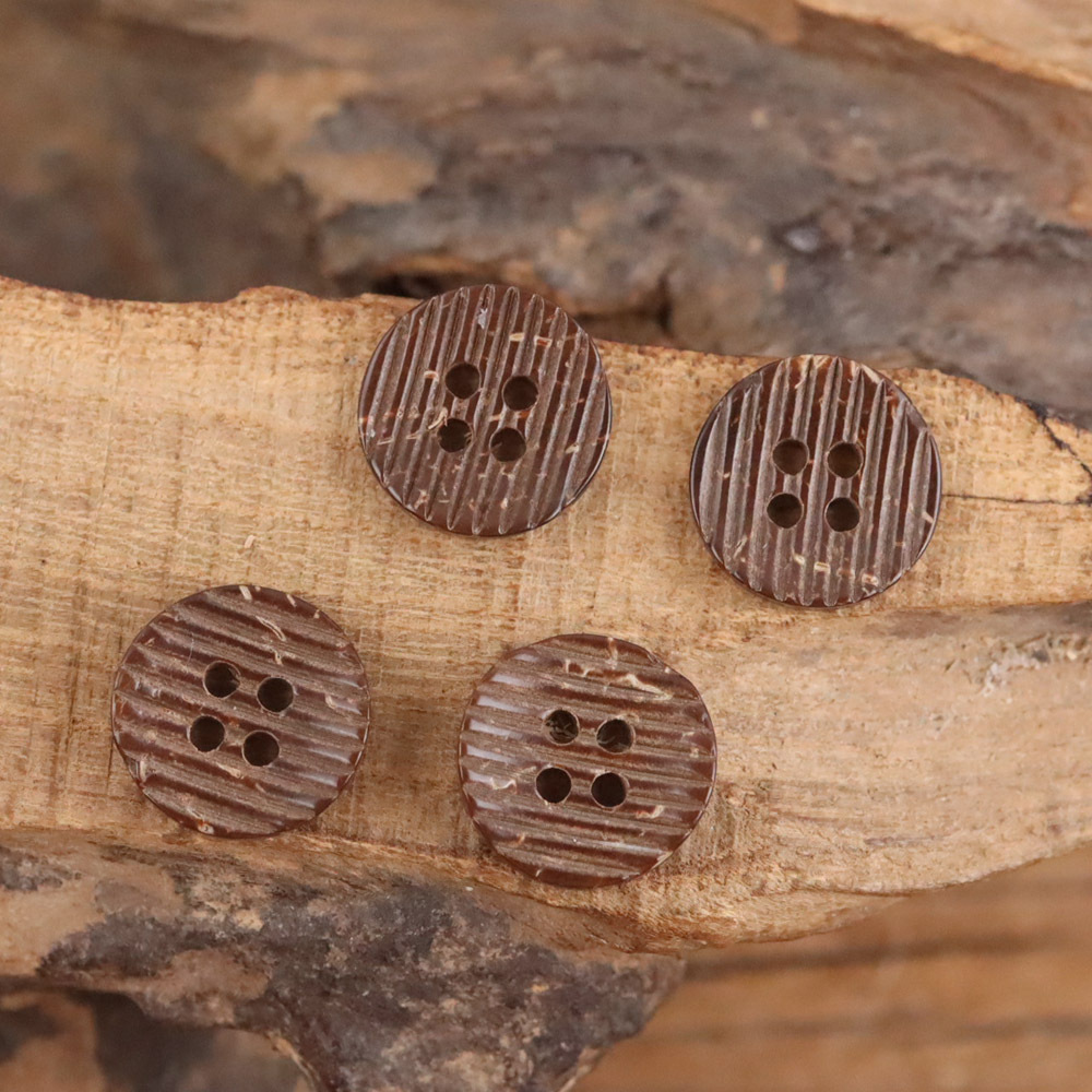 Kemeja Katun Linen Gaya Patah Bahan Cangkang Kelapa Alami Gaun Rompi Garis Lengkung 14mm Gaun Kancing Denim Retro