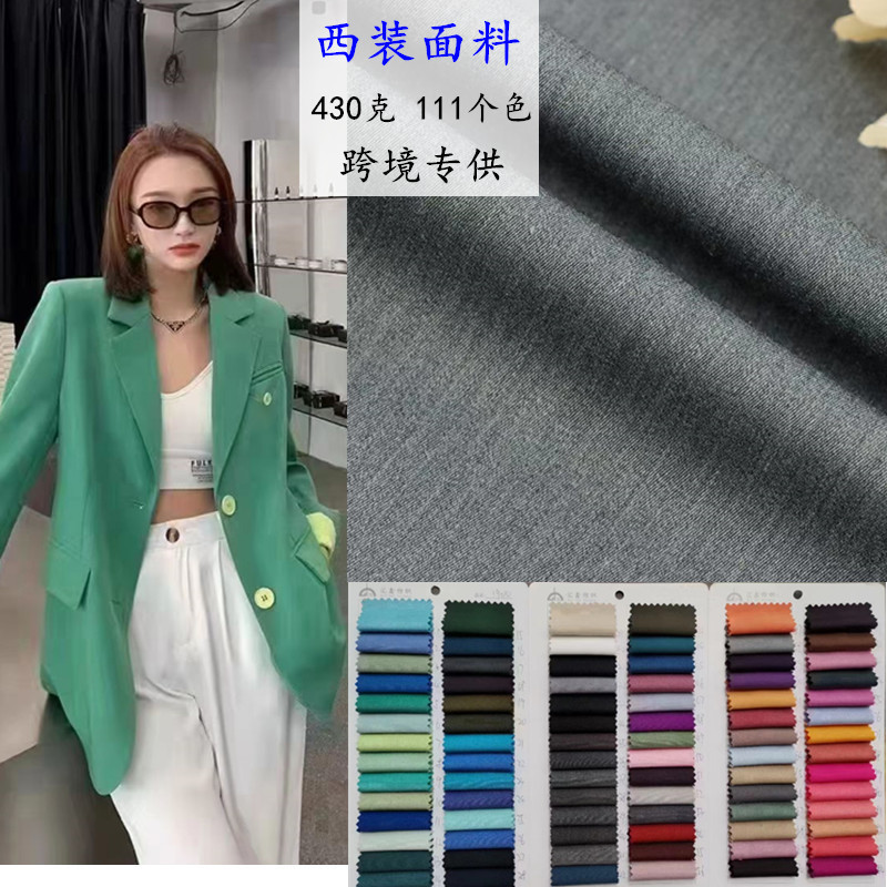 Kain setelan miring halus TR khusus lintas batas dalam stok kain katun poliester seragam JK tingkat tinggi campuran 430g kain katun poliester kepar
