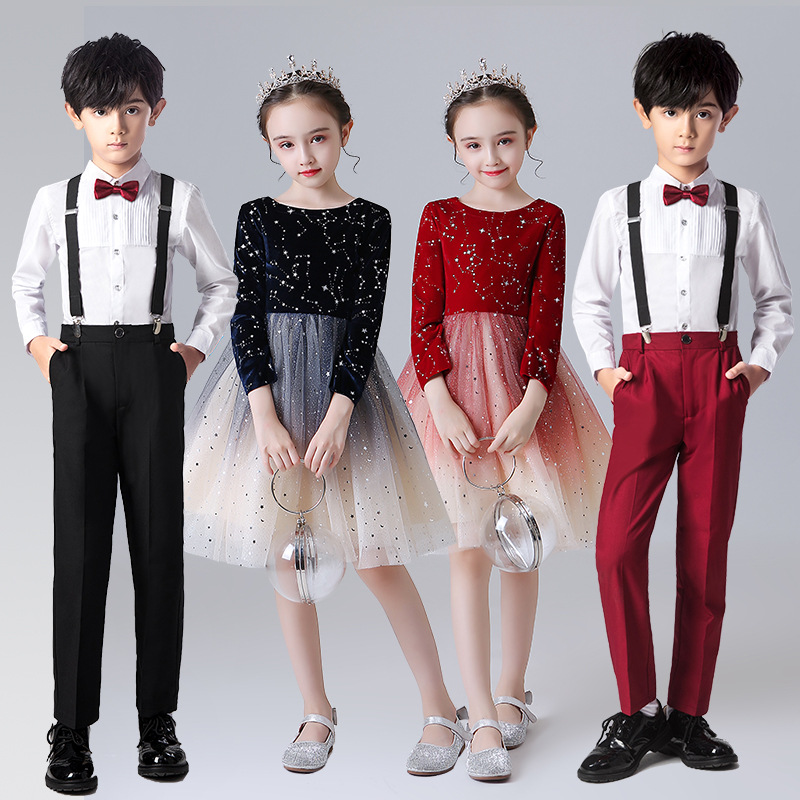 Gaun anak perempuan, kostum penampilan anak-anak, rok anak-anak TK, kostum pertunjukan paduan suara siswa sekolah dasar