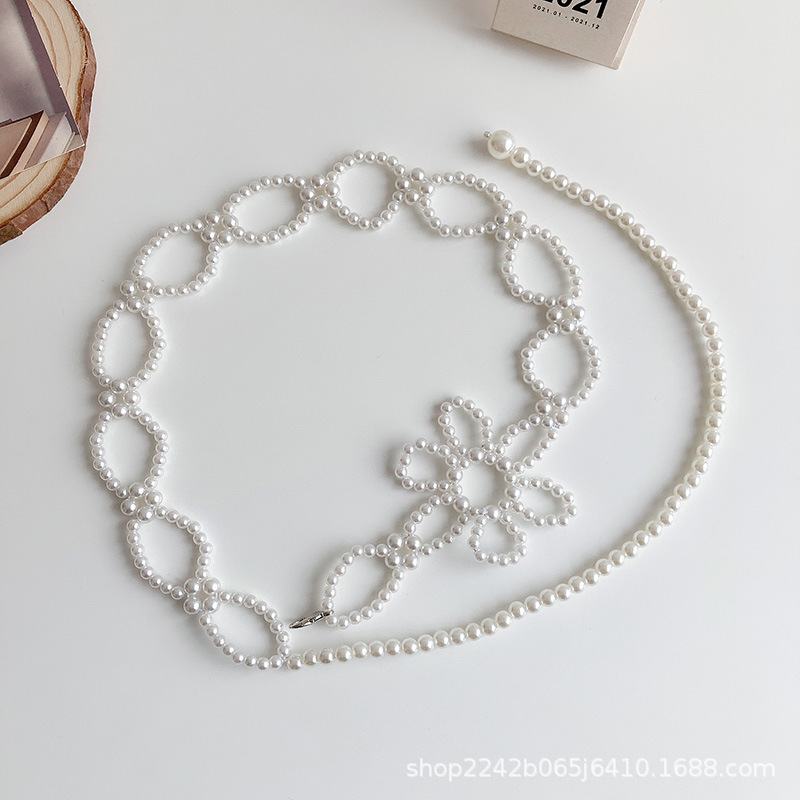 Gaun tali pinggang wanita, satu bunga dekoratif mutiara tali rantai pinggang modis retro artistik setelan gaun jk sabuk elegan