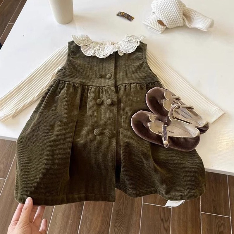 2024 Pakaian Anak-anak Korea Gaun Korduroi Anak Perempuan Pakaian Musim Gugur Rok Romo Bayi Modis Gaya Barat Model Baru Rok Putri