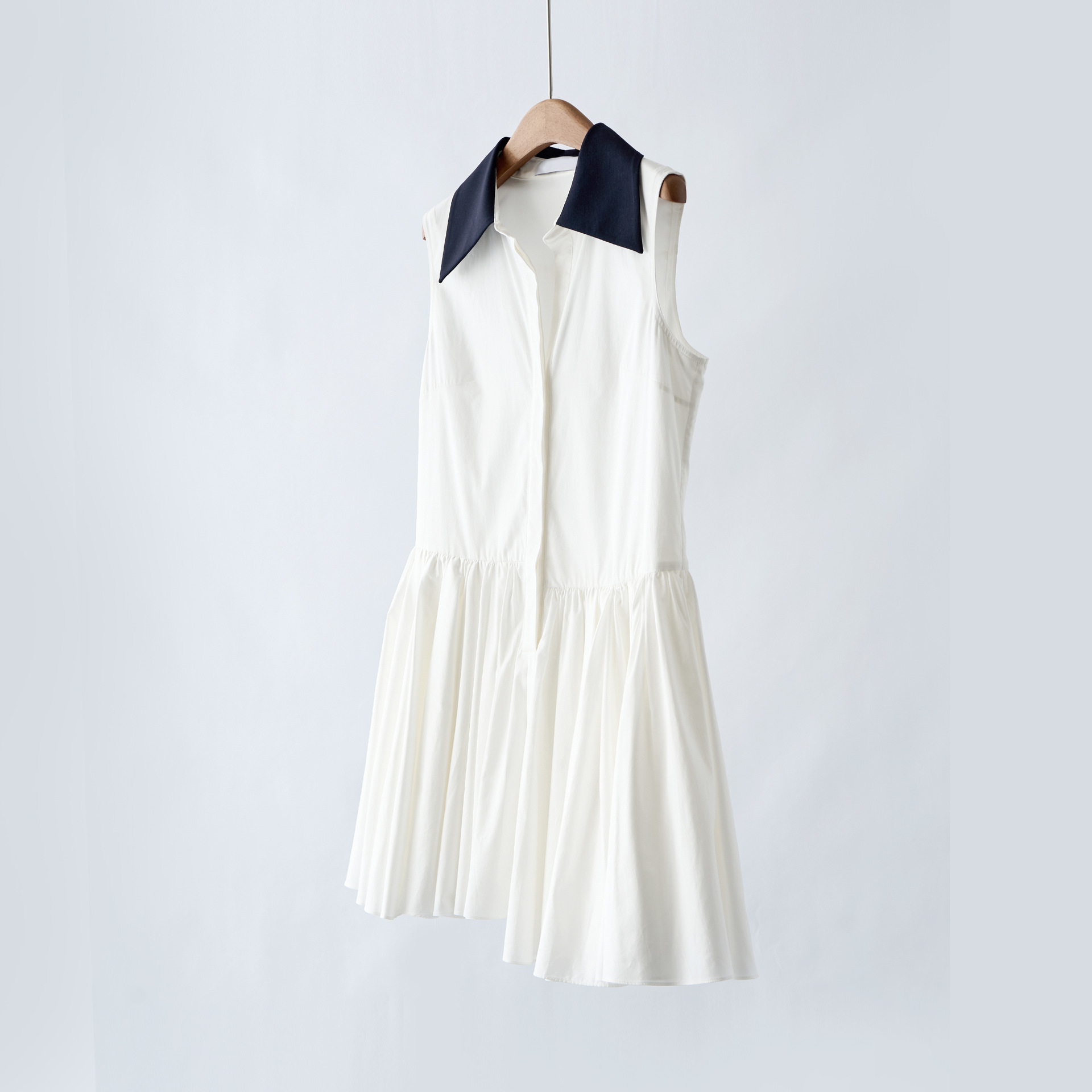 [Model Sama dengan Jisoo Showoo] Gaun Wanita Mengikat Pinggang Tanpa Lengan Warna Kontras Tidak Beraturan Katun Murni 3.3K di G