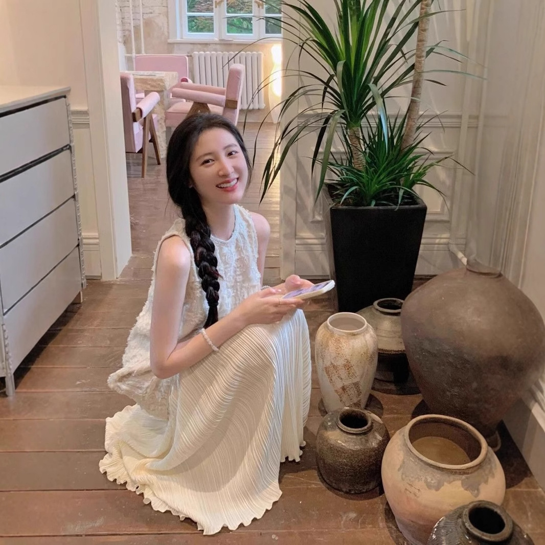 Skims MILKY SHEER Gaun Lipit Tanpa Lengan Kerah Tinggi Slim Fit Terlihat Langsing Gaya Gadis Pedas Murni