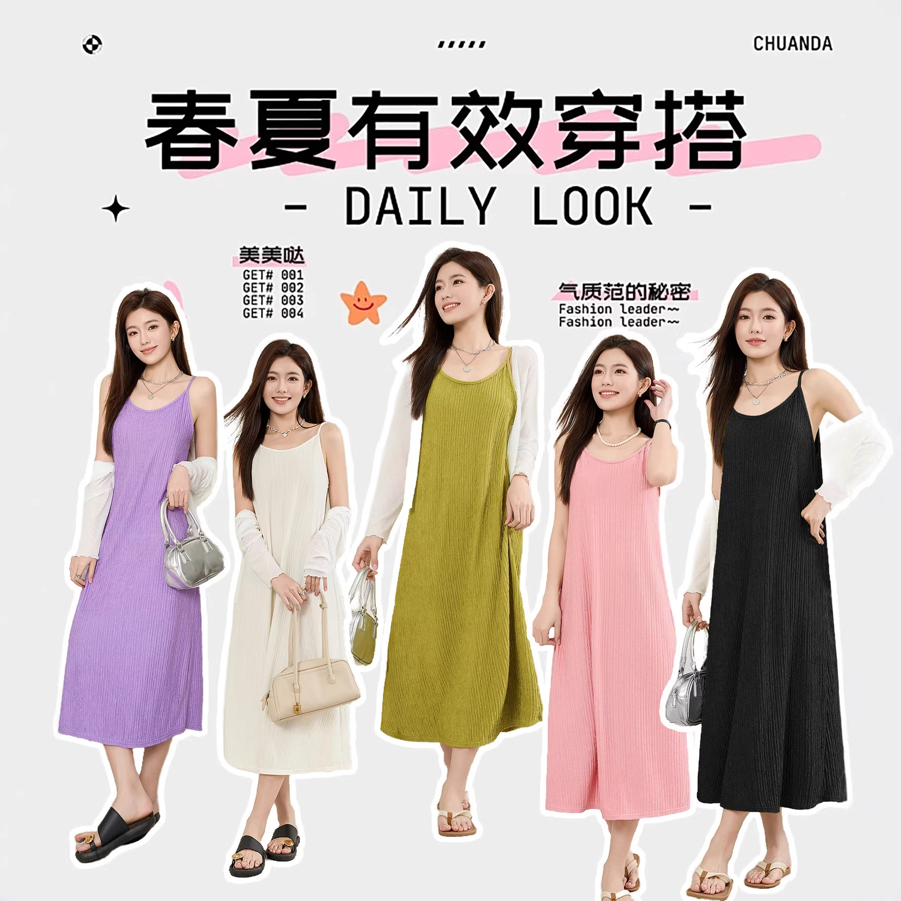 Gaun Camisole wanita baru musim panas 2024 gaun ramping elegan Semua cocok rompi Dalaman gaun luar