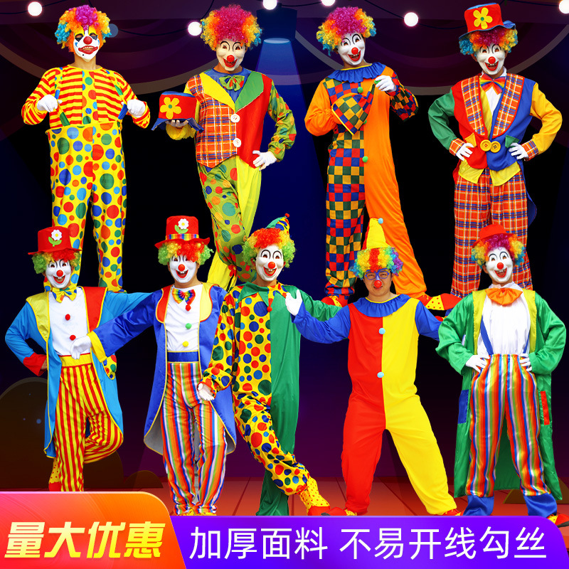 Kostum Halloween badut dewasa, kostum panggung, kostum pertunjukan, pakaian pria dan wanita