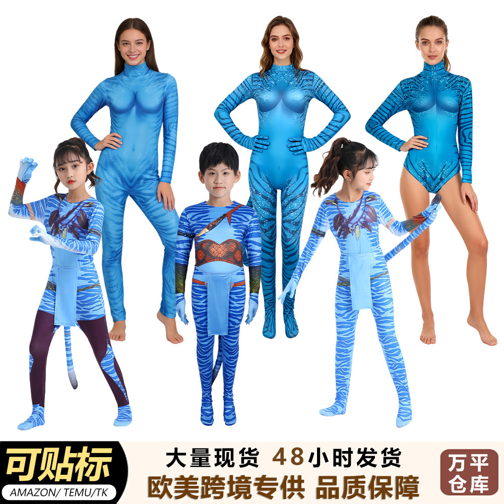 Avatar 2 pakaian ketat cosplay anak-anak dewasa, kostum pertunjukan panggung, jumpsuit bermain peran, celana ketat anak-anak dan dewasa