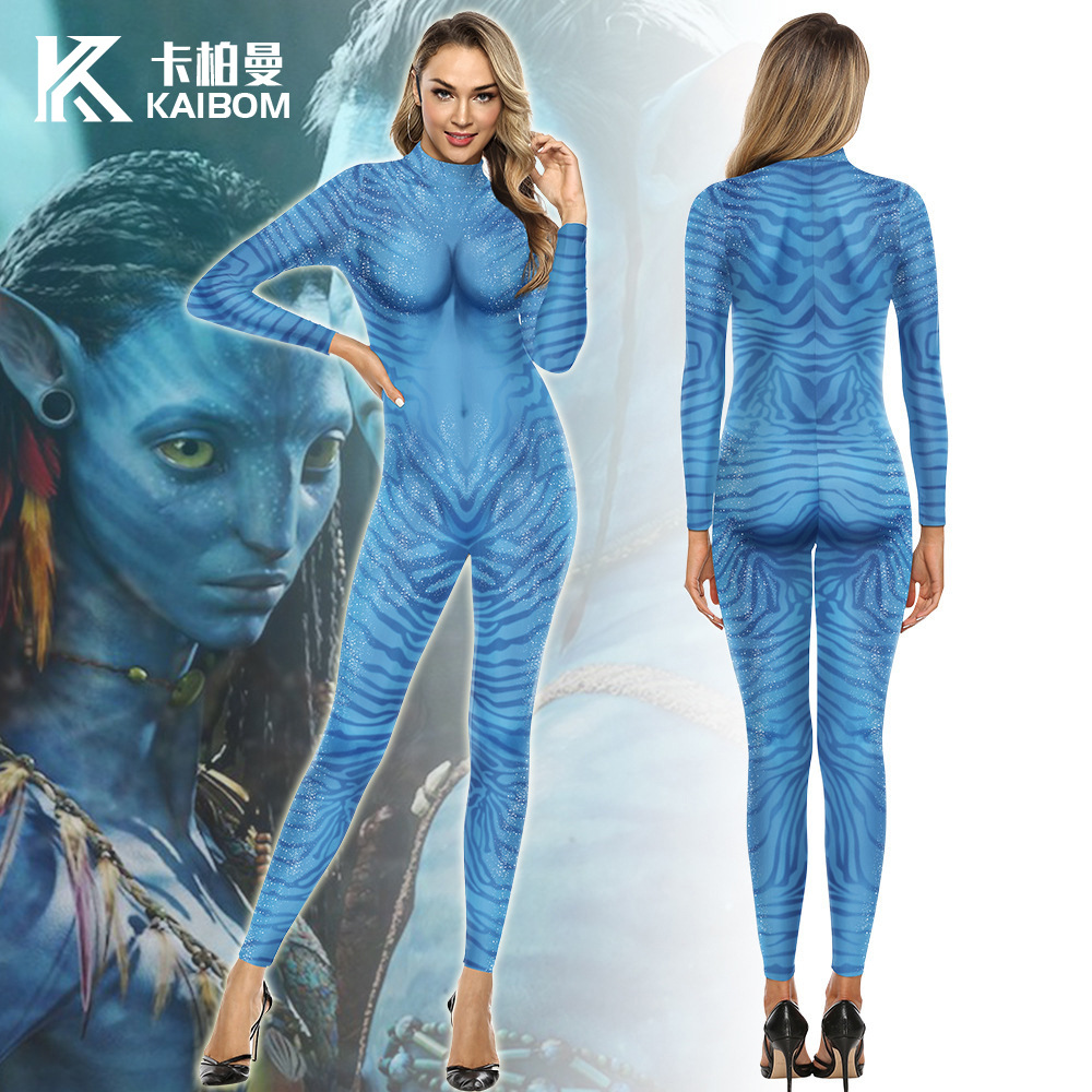 Cross-border jumpsuit lengan panjang ketat gambar cetak digital pakaian wanita cos Avatar 2 Film baru kinerja panggung
