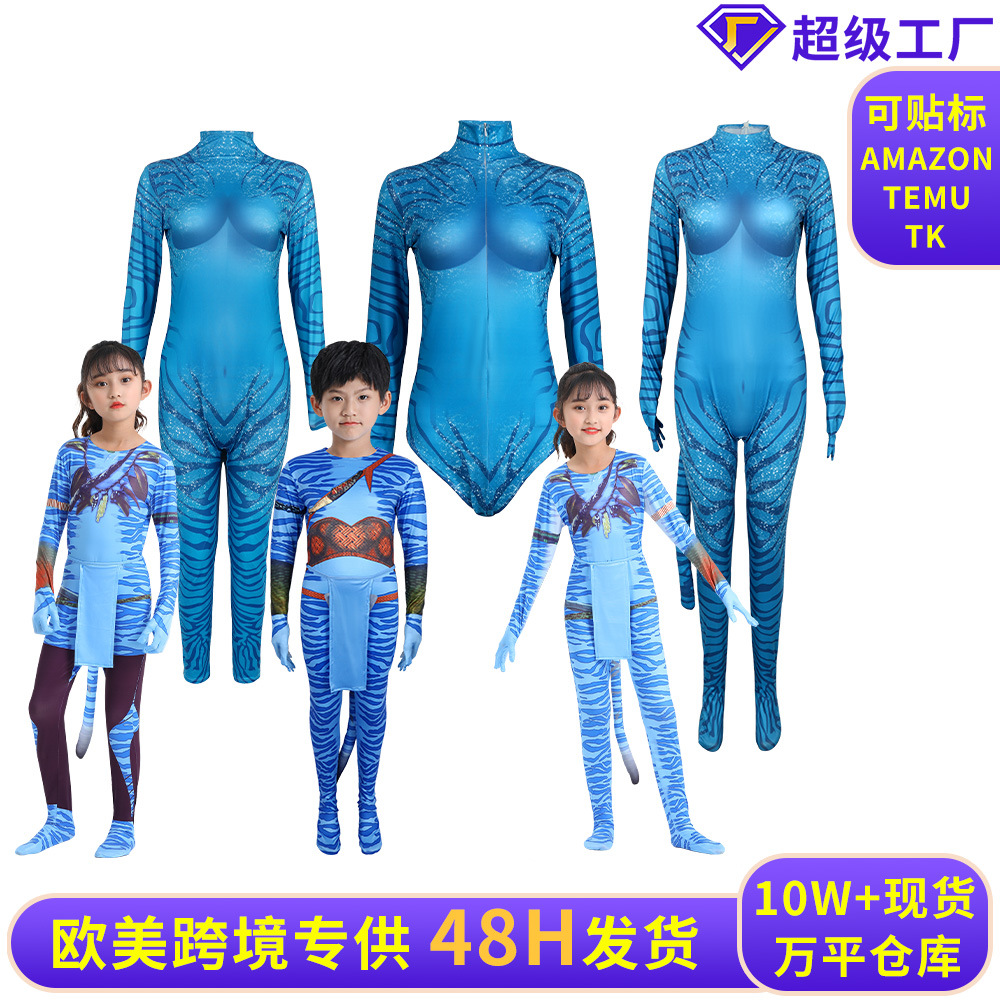 Pakaian cosplay Halloween lintas batas pakaian penampilan panggung anak-anak jalan air jumpsuit ketat dewasa Avatar