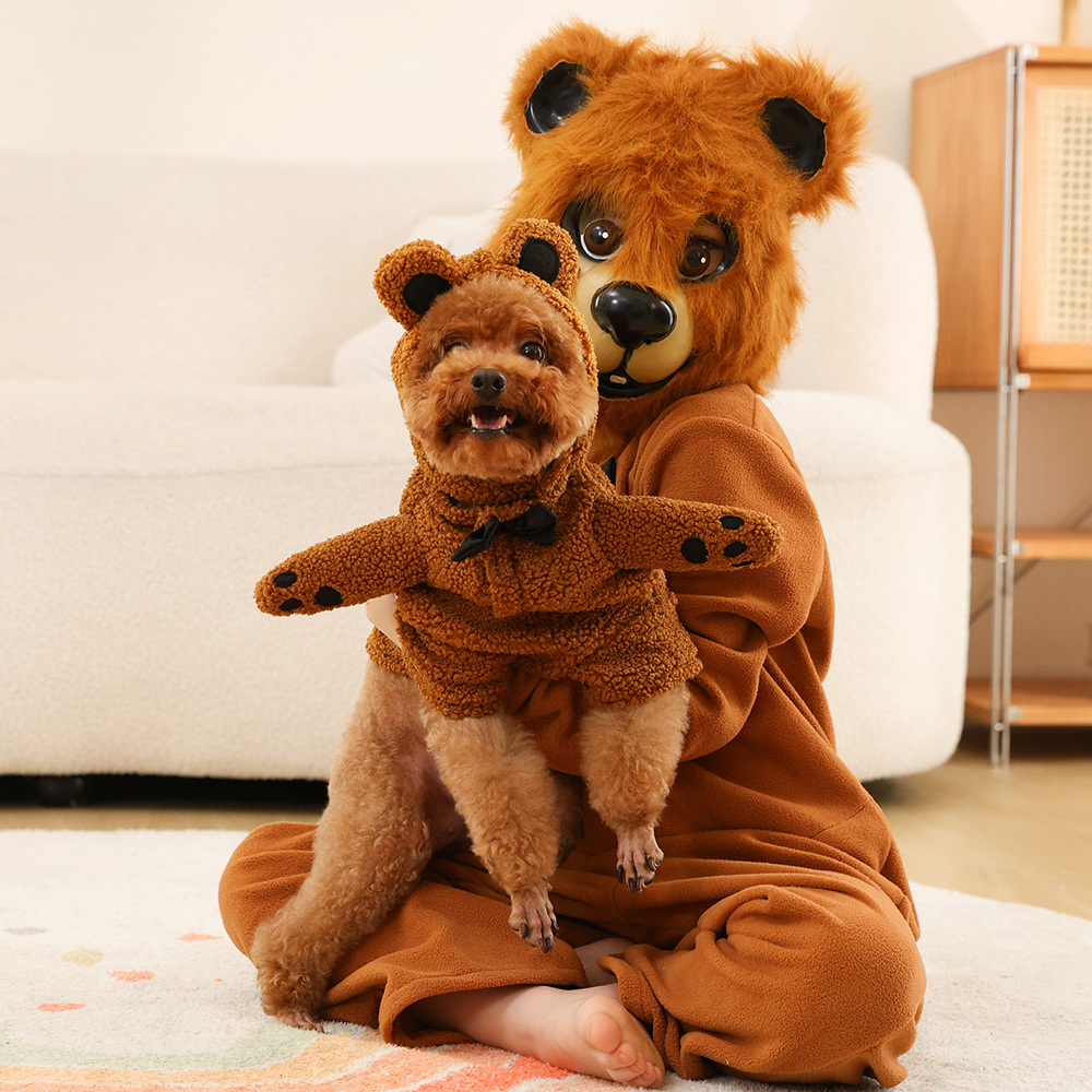 Pakaian kostum Halloween, kostum Halloween, pakaian bulu hewan beruang, pakaian penampilan pesta beruang coklat, drama panggung hari anak-anak