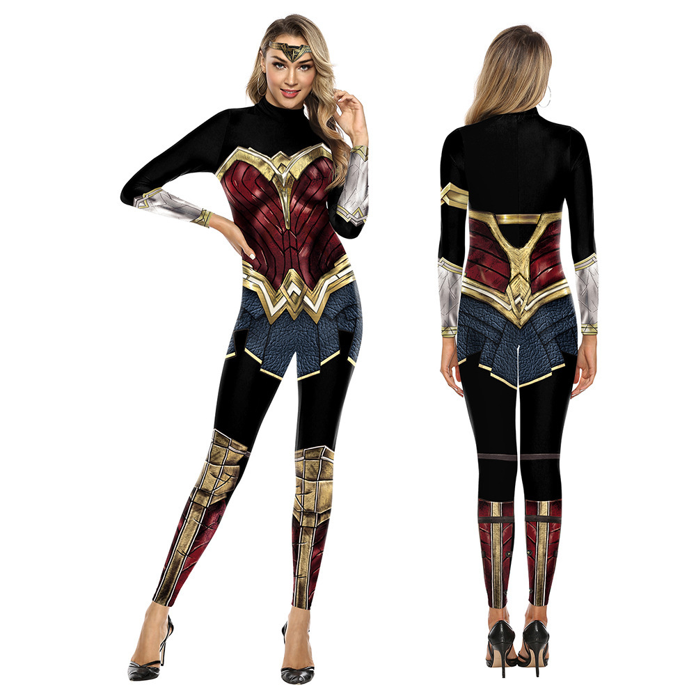 Jumpsuit pertunjukan panggung wanita, kostum cosplay Liga keadilan Eropa dan Amerika, gaya yang sama untuk pria dan wanita
