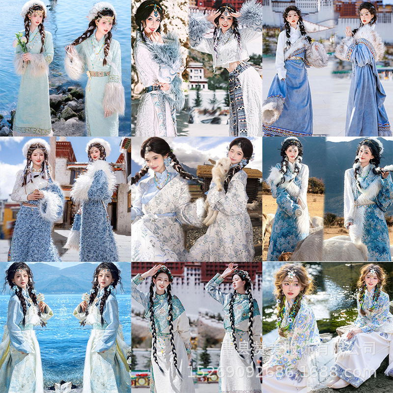 Pakaian Xizang mulia Xizang jubah Xizang selebriti Internet biru pakaian fotografi tari foto perjalanan gaya etnis Lhasa Xizang