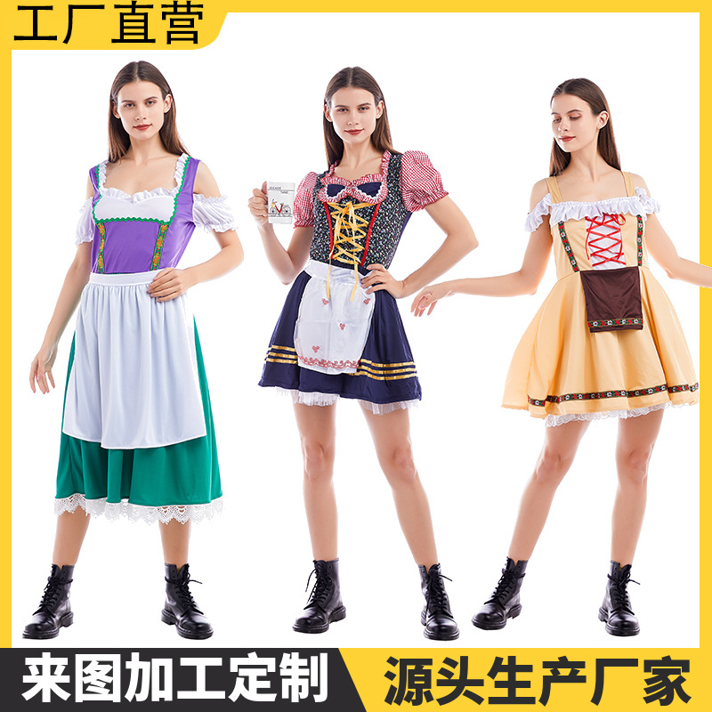 Pakaian Border Crossborder Jerman Oktoberfest Pakaian Bir Tali Berwarna Renda Wanita Gaya Cos Halloween Eropa Amerika