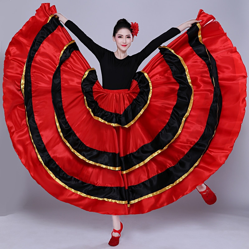 Rok dansa adu banteng Spanyol rok tari perut setelan dewasa tari terbuka flamenco rok ayun besar tari setengah panjang