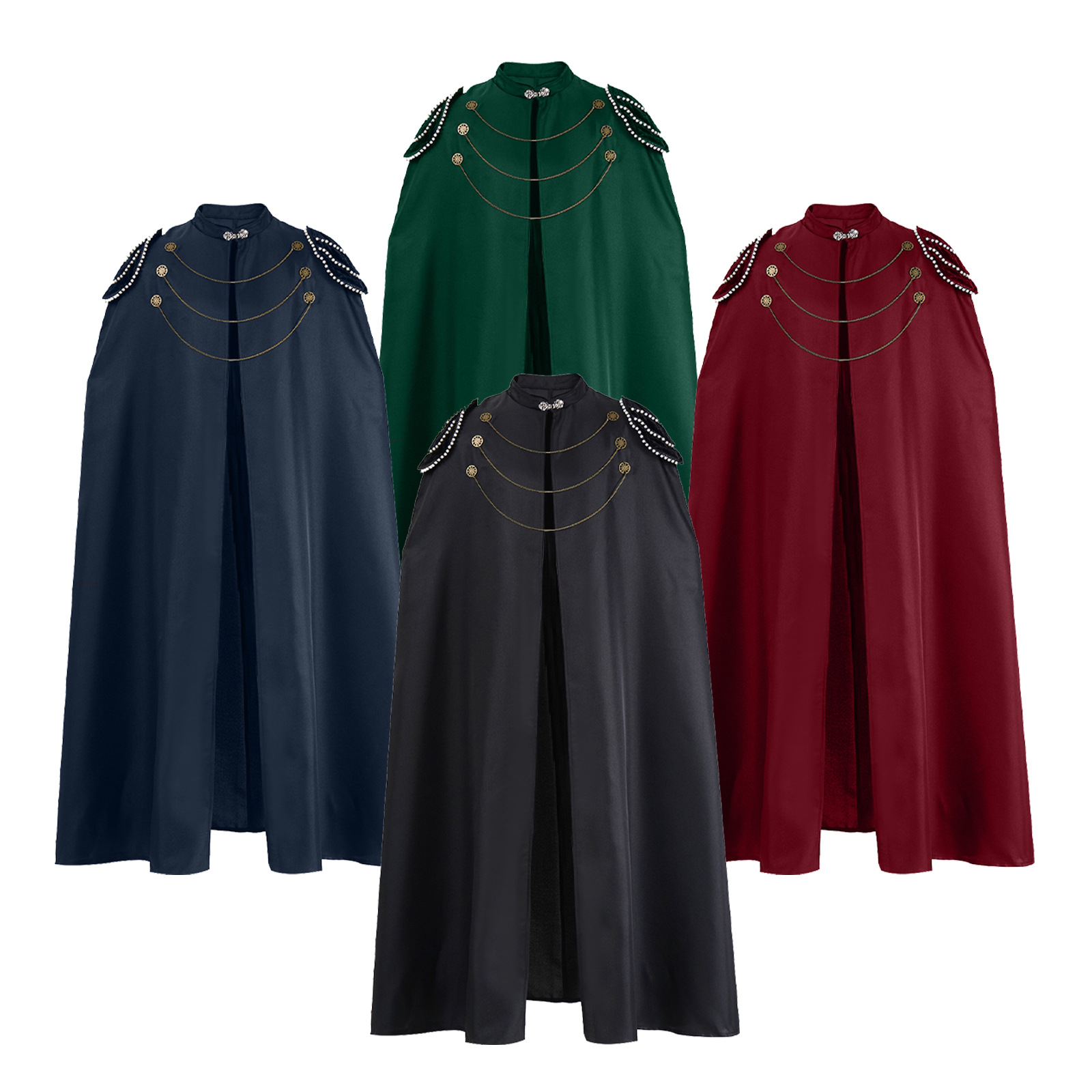 Jubah Kerajaan Eropa Abad Pertengahan dengan Bantalan Bahu Pria dan Wanita Retro Tirai Manik-Manik Gear Rantai Berkerudung Jubah Pertunjukan Gaya Jubah