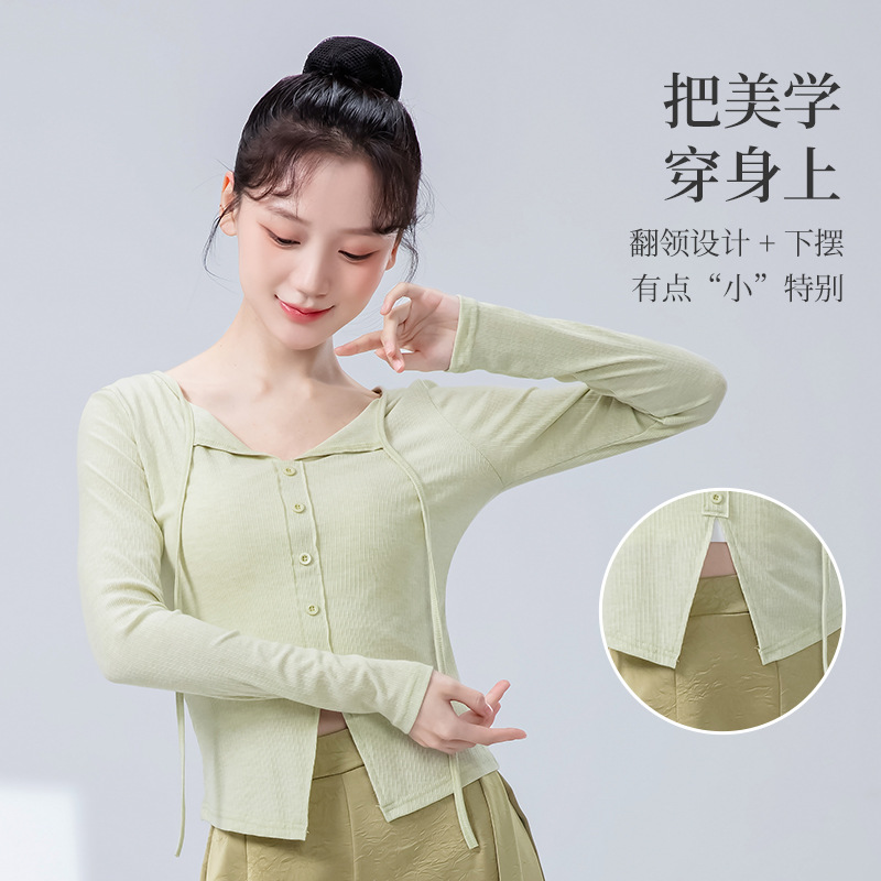Pakaian dansa klasik Atasan Wanita tari modern Tiongkok lengan lonceng baju tari tubuh baju latihan tari 230g