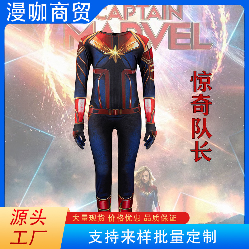 Jumpsuit Cos Captain Marvel Halloween Eropa dan Amerika Pakaian Ketat Wanita Pakaian Pertunjukan Karakter Pesta Anak-anak