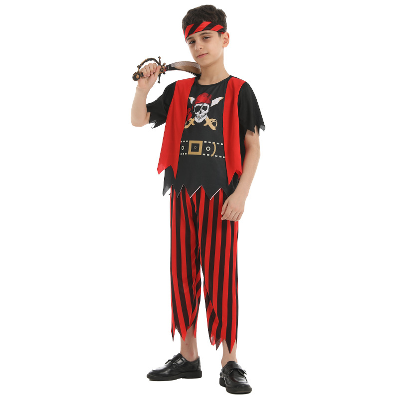 Baru pakaian Halloween anak-anak tengkorak bajak laut cosplay anak laki-laki dan perempuan dua potong jam tangan sekolah kinerja set