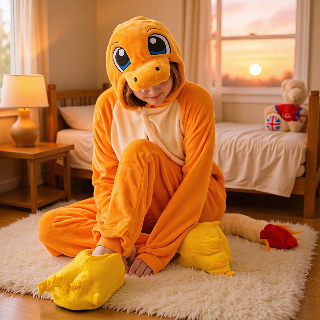 Jumpsuit flanel naga api anak-anak, baju tidur anak kartun lucu untuk kinerja hewan musim gugur dan musim dingin