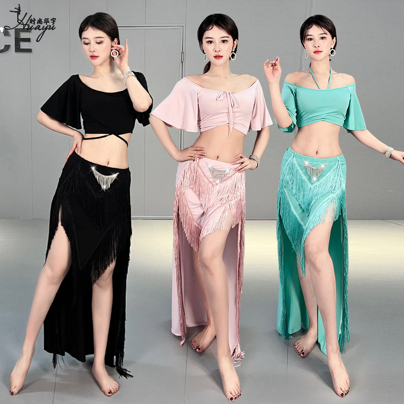 Huayu pakaian latihan tari perut, pakaian pertunjukan tari Oriental baju penampilan rumbai seksi baru musim panas 2024 untuk wanita