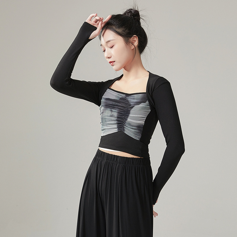 Pakaian latihan etiket Tubuh musim gugur dan musim dingin setelan Badan wanita pakaian latihan tarian pengajar tubuh kelas atas atasan hitam