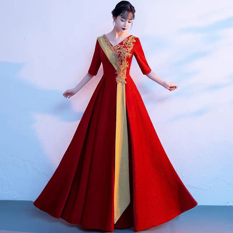 2024 Rok Gaun Paduan Suara Setengah Baya dan Tua Model Baru Pakaian Pertunjukan Paduan Suara Besar Temperamen Presenter Wanita Dewasa Model Panjang
