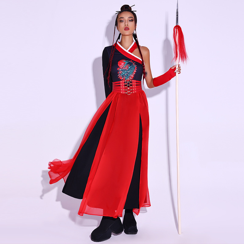Kostum pertunjukan nasional gaya Tiongkok, kostum panggung, kostum pertunjukan grup wanita Korea Selatan, kostum penampilan grup, busana bisnis