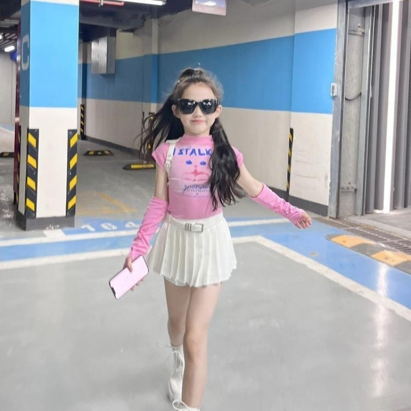 Pakaian Anak-anak Universitas Menengah Musim Panas Kaos Anak Perempuan Lengan Pendek Rok Dopamin Dua Set Pakaian Pertunjukan Kelompok Wanita Set Jalan Goreng