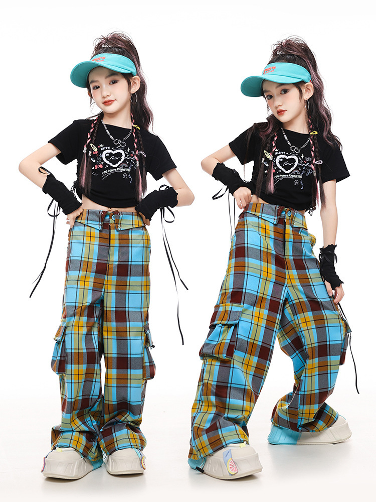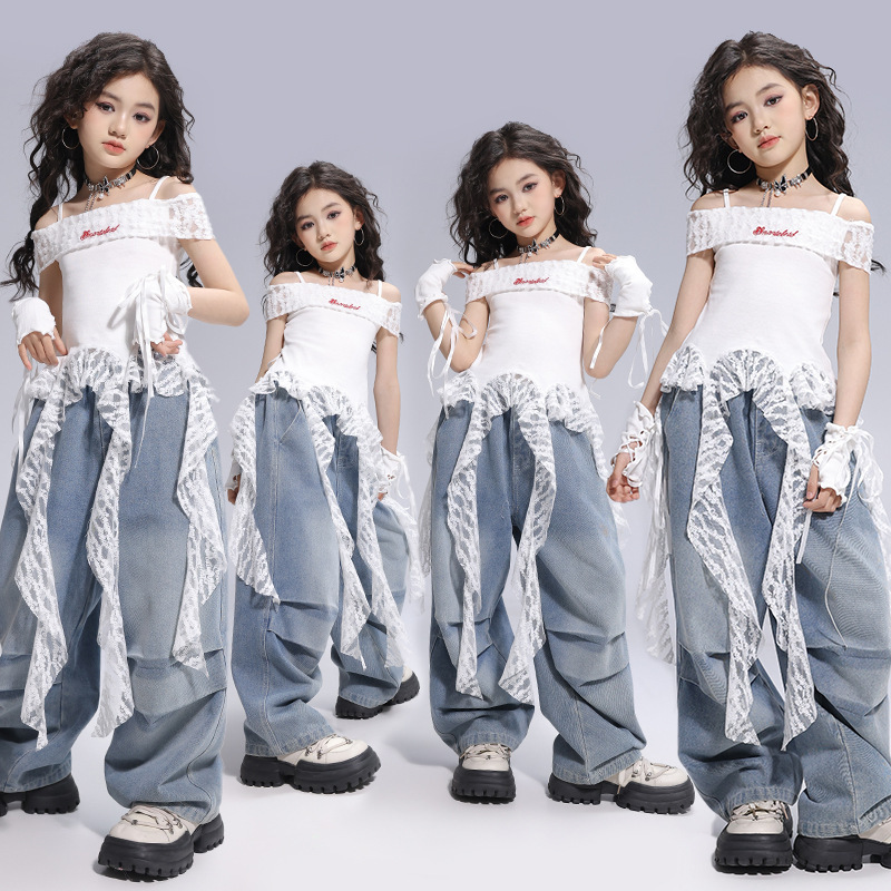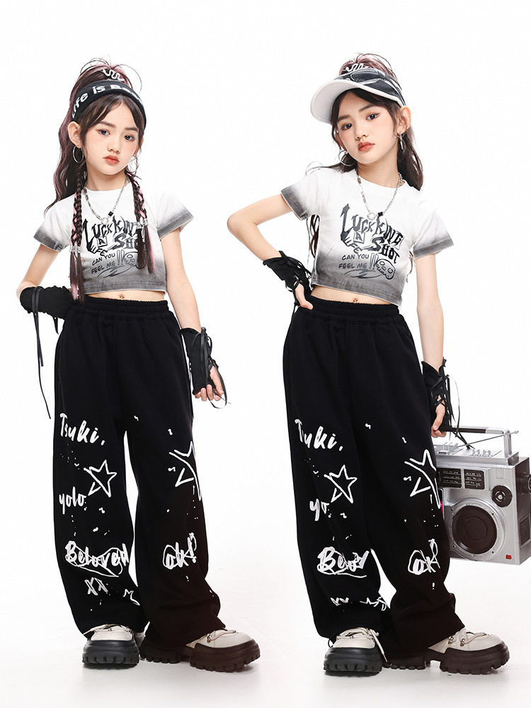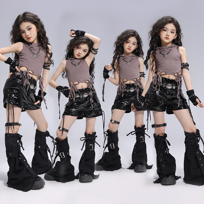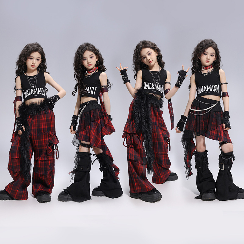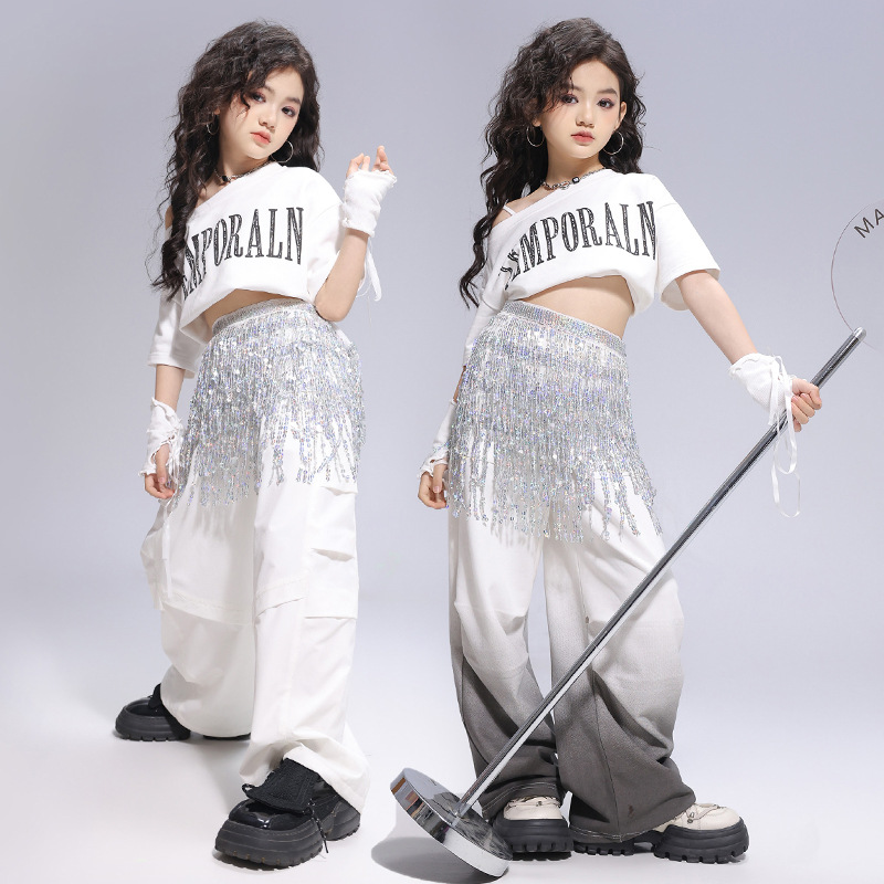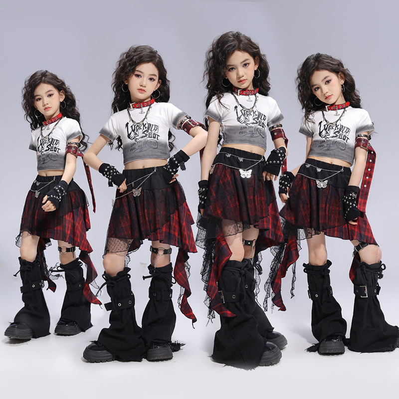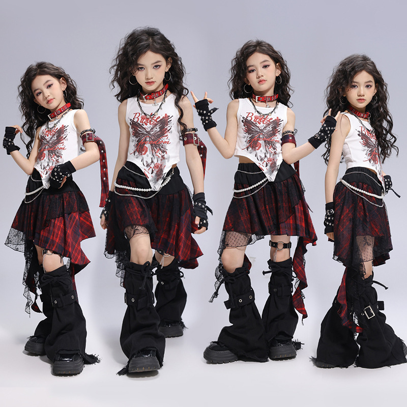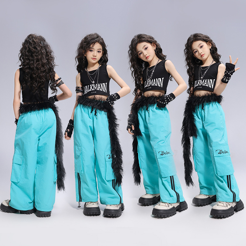 Kostum Tari Jazz Anak Perempuan Trendi Keren dan Modis Pertunjukan Berjalan Anak Perempuan Pakaian Panggung Bernyanyi Gaya Kelompok Wanita Kostum Pertunjukan Hip-hop Anak Perempuan