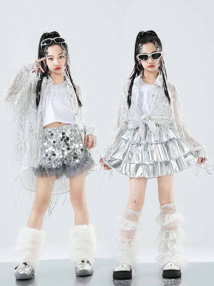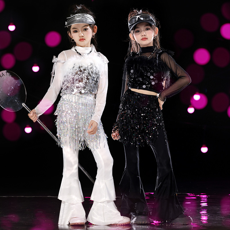 Pakaian Pertunjukan Tari Jazz Jazz Anak Perempuan Set Payet Manis Keren Grup Wanita Pakaian Hip-hop Anak-anak Pakaian Trendi catwalk