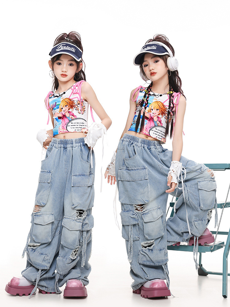 Pakaian Tari Jazz Anak Perempuan Jazz Tank-top Model Korea Grup Wanita Kpop Dance Gadis Street Dance Pakaian Pertunjukan Anak